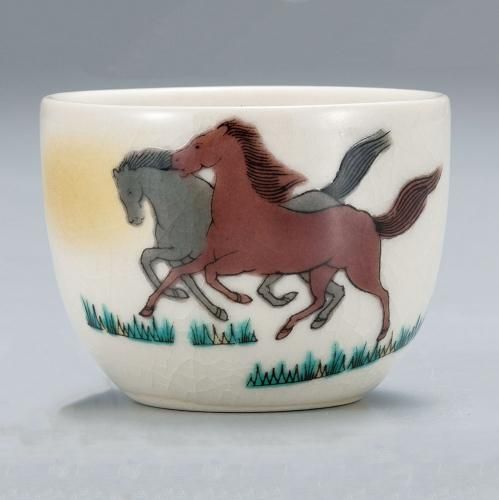 7.5号波乗り午 色絵九谷(台・敷物・立札付) 化粧箱入り