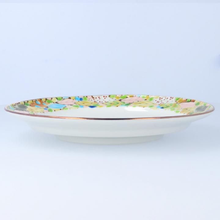 料理を盛りつけても華やかな手描きの作品。手描きならではの素朴な風合いが楽しめ、北欧デザインのような温もりも感じられます。メインのおかず皿や、デザートの盛りつけなど、使い勝手の良いサイズ感も◎