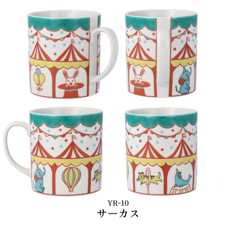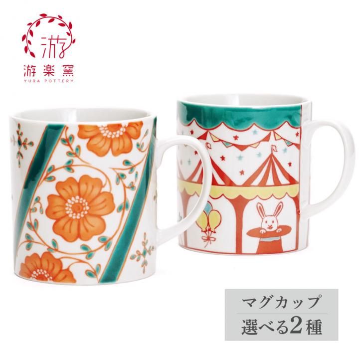 マグカップ 選べる2種類 色絵花並べ・サーカス / 游遊窯 化粧箱入り