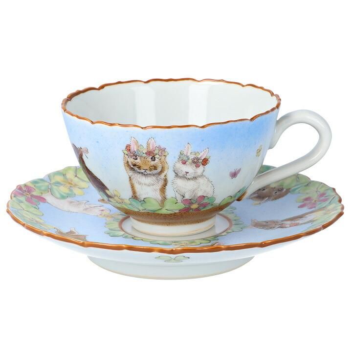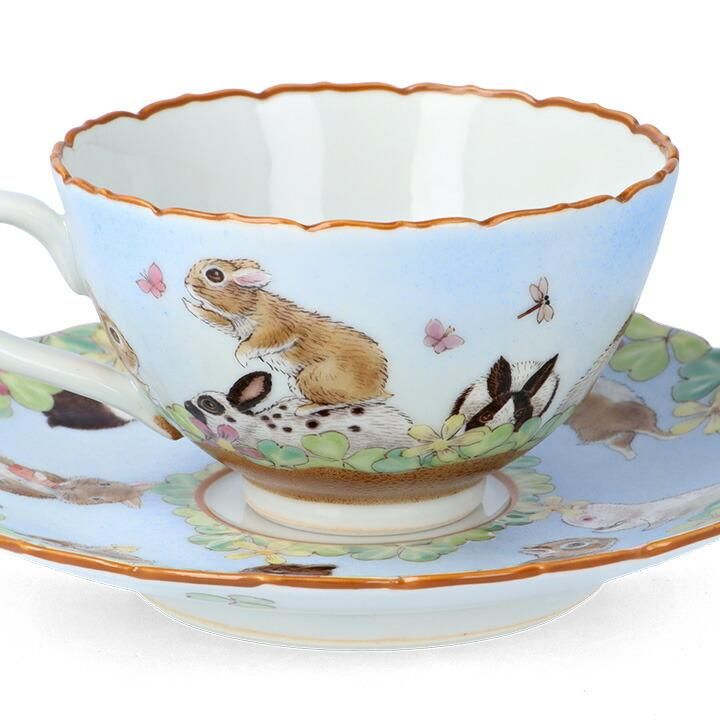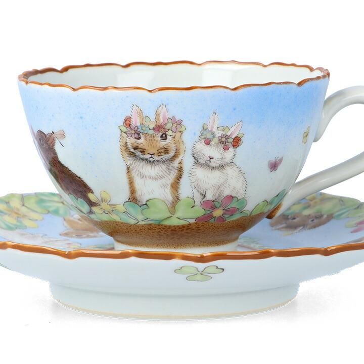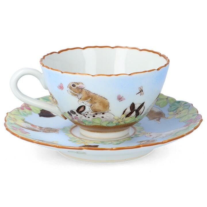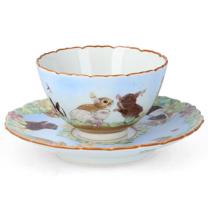 カップ&ソーサー Rabbits and Wood Sorrels / 勝亦秀彰 木箱入り