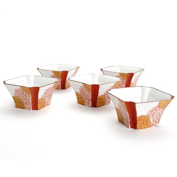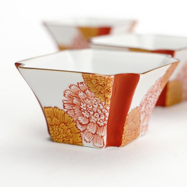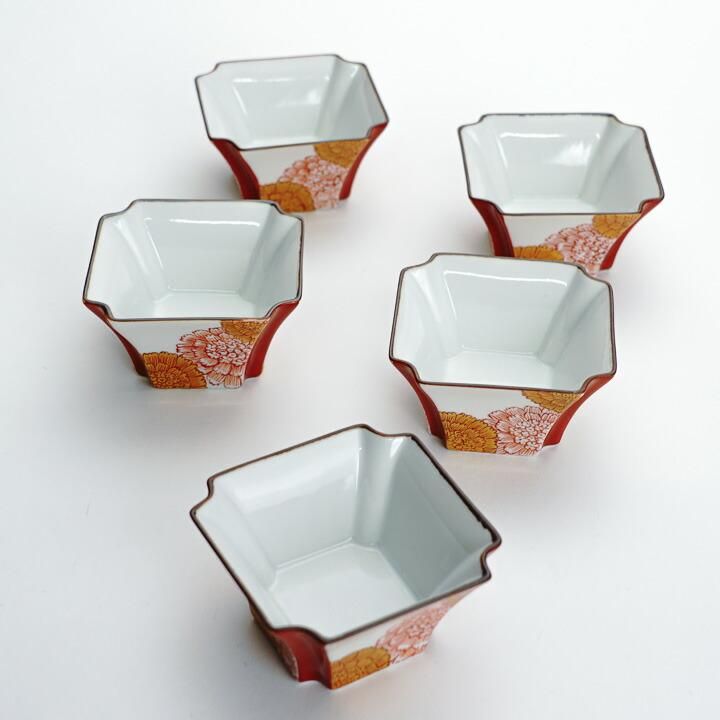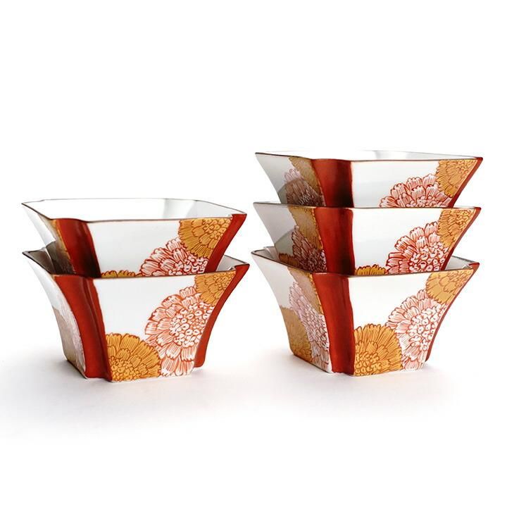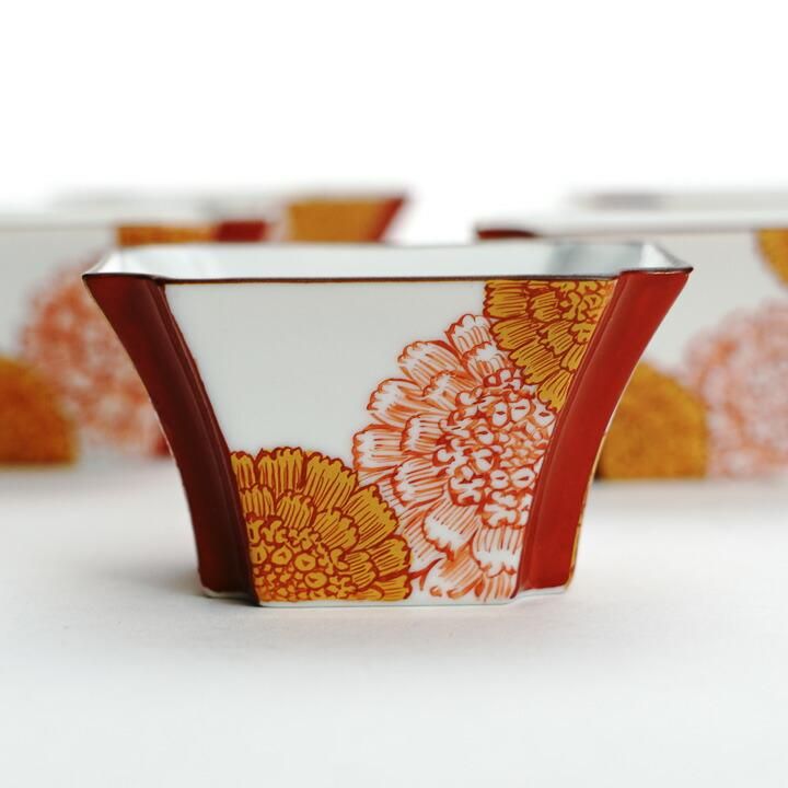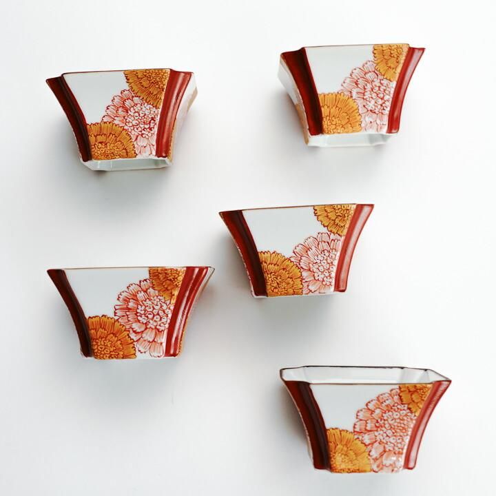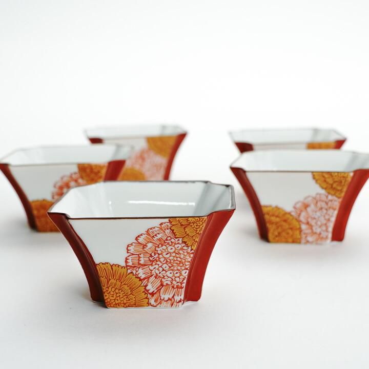 スミ切 四角小鉢 細華(赤)5個セット / 中川眞理子