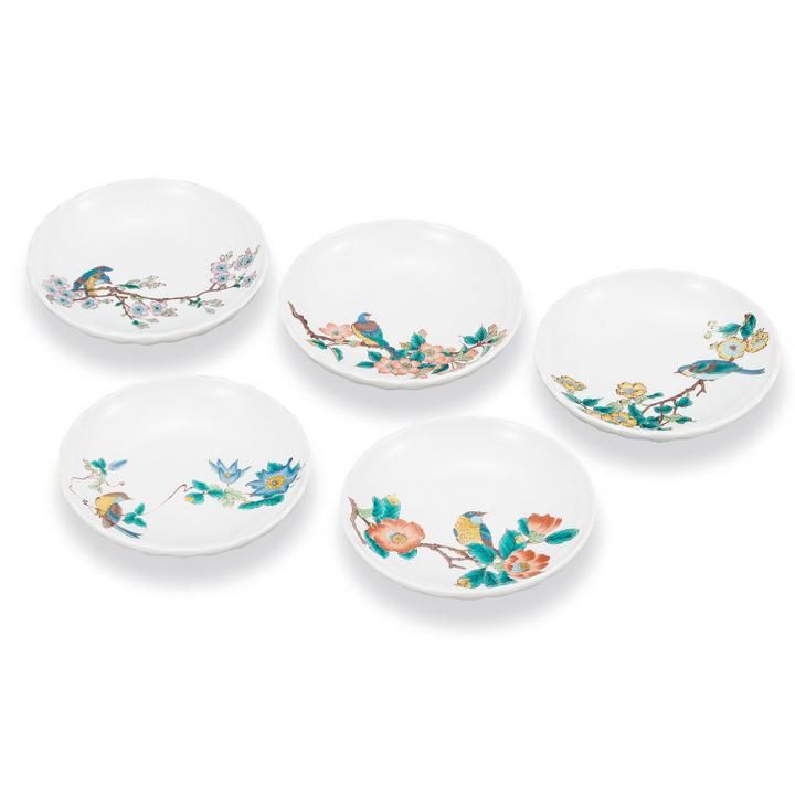 4.5号皿揃 絵変わり花鳥 化粧箱入り