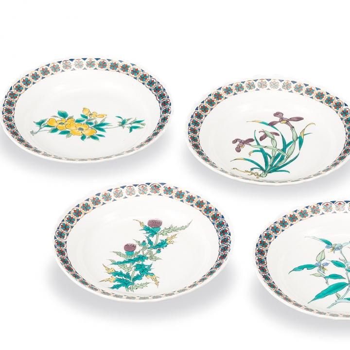 九谷焼の色彩の深みと厚く盛り上げる着彩の、風合いをお楽しみください。