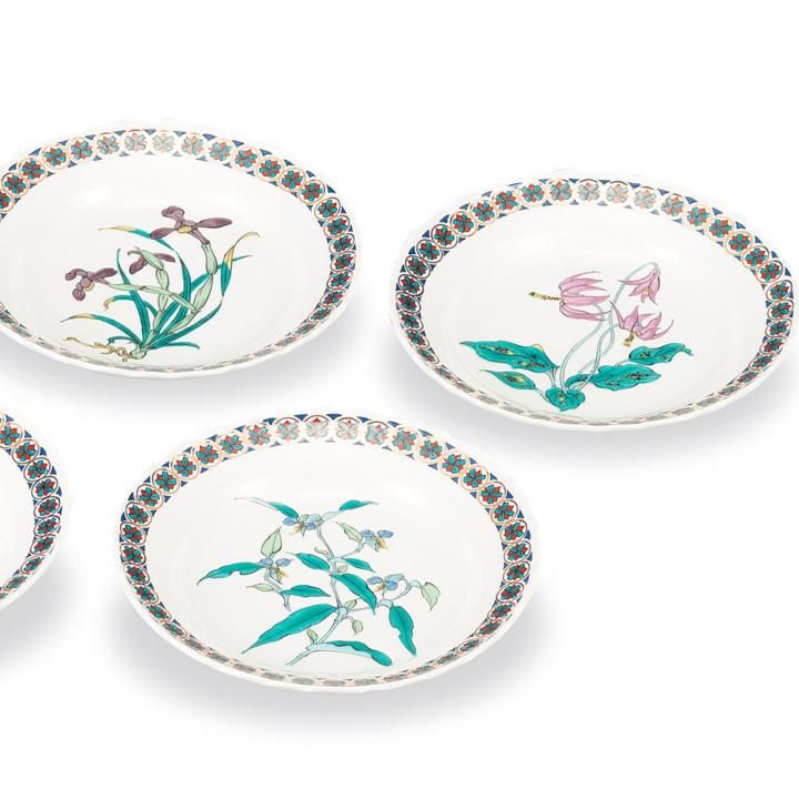 5.5号皿揃 金小紋草花絵変わり 化粧箱入り