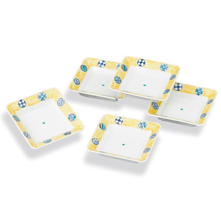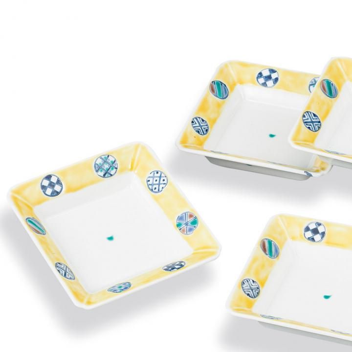 5.5号皿揃 黄釉丸紋 化粧箱入り