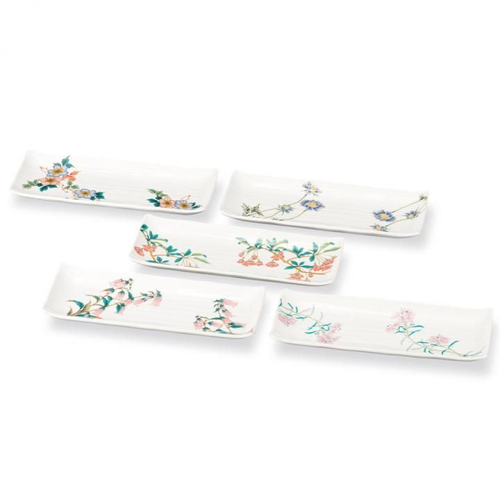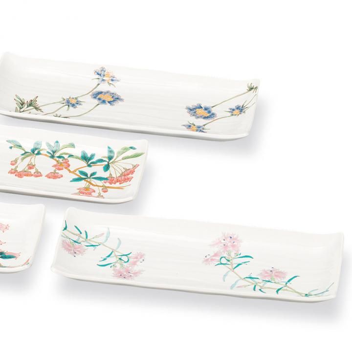 9.6号皿揃 絵変わり草花 化粧箱入り