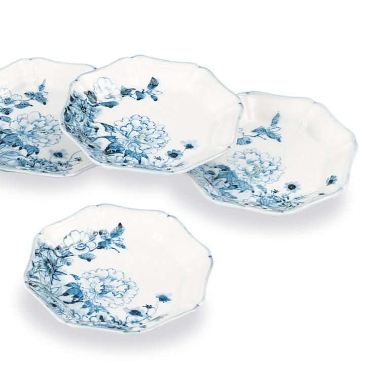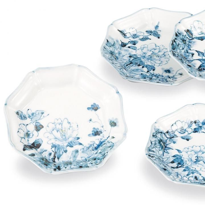 4号八角皿揃 花寄せ / 千椿 化粧箱入り
