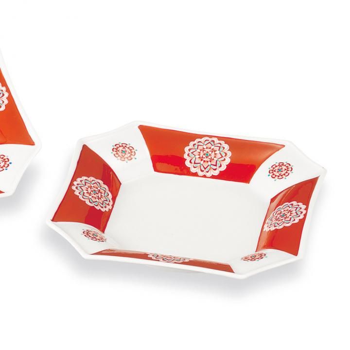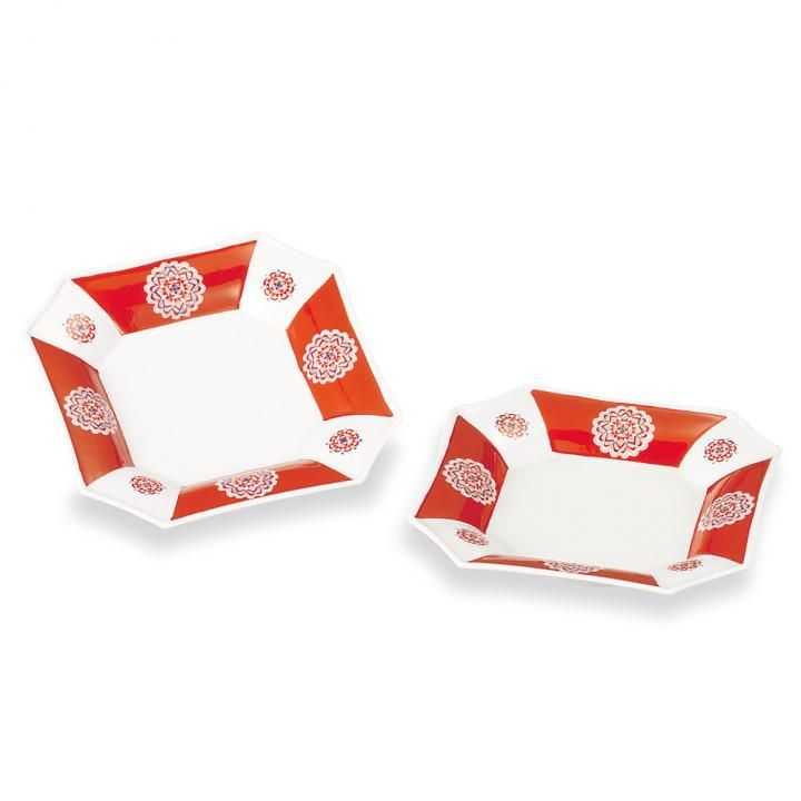 ペア5.5号皿 赤絵丸紋 / 大志窯 化粧箱入り