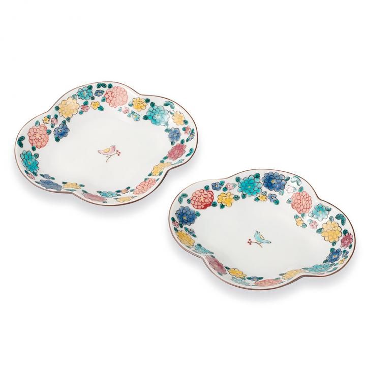 ペア6号皿 小鳥とマリーゴールド / 双鳩窯 化粧箱入り