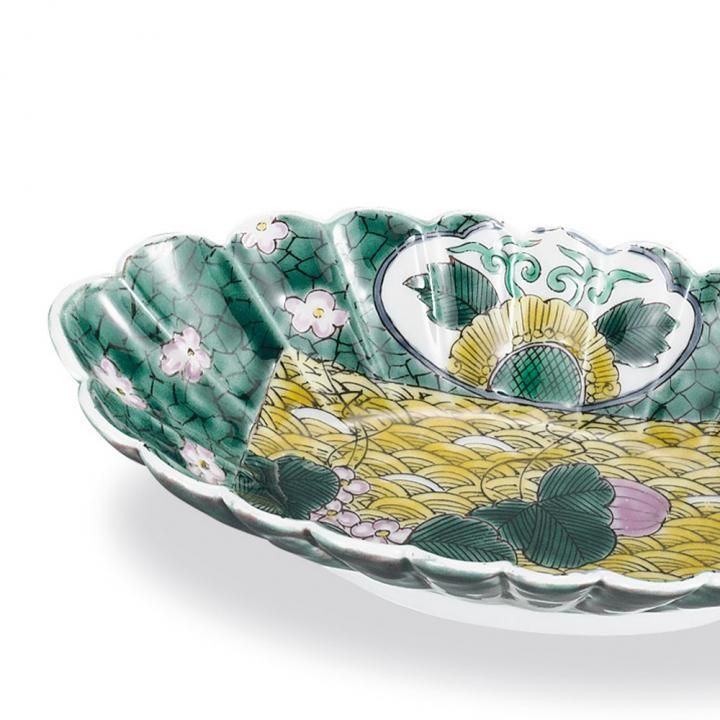 九谷焼の色彩の深みと厚く盛り上げる着彩の、風合いをお楽しみください。