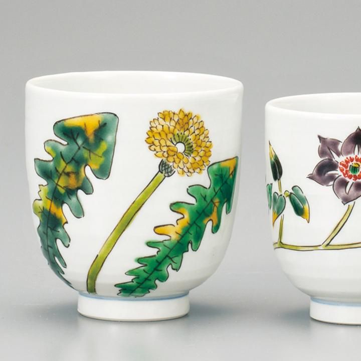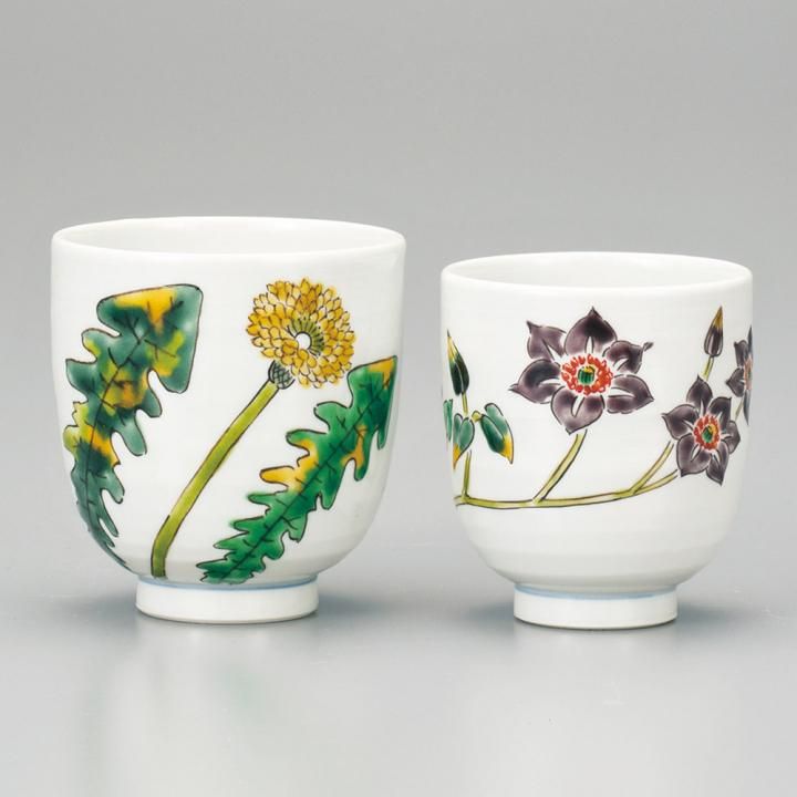 組湯呑 タンポポ・桔梗 / 川田稔 化粧箱入り