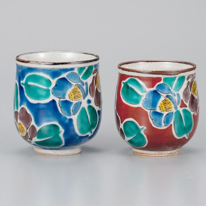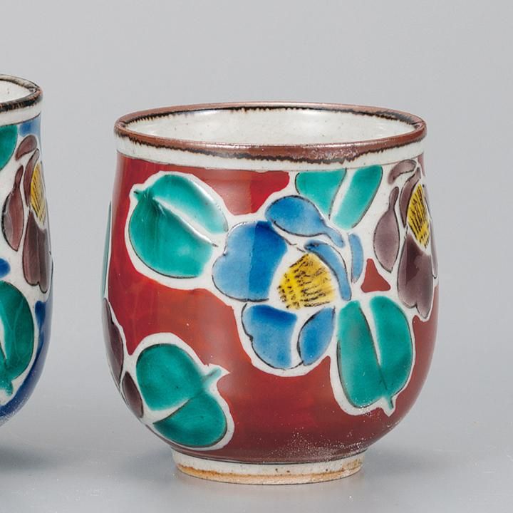 組湯呑 吉田屋山茶花(赤紺) / 幸洋窯 化粧箱入り