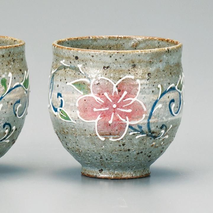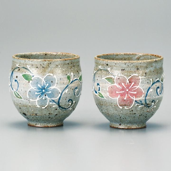 組湯呑 花唐草 / 相川志保 化粧箱入り