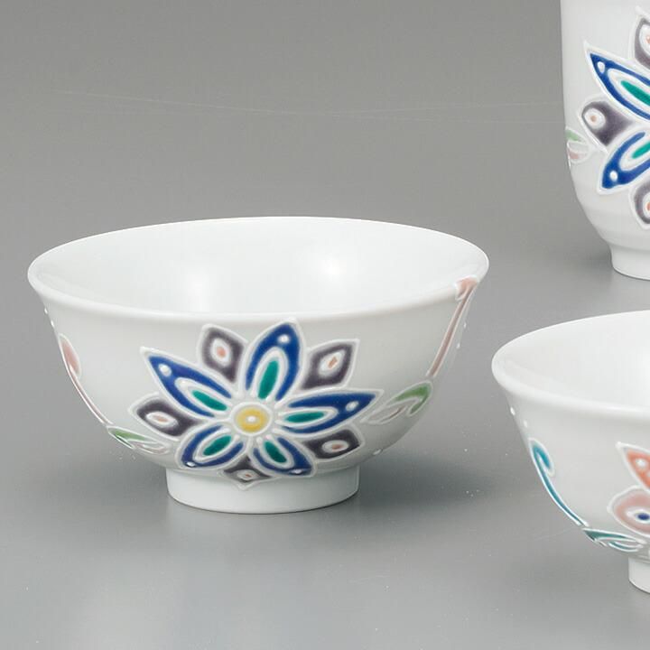 九谷焼の色彩の深みと厚く盛り上げる着彩の、風合いをお楽しみください。