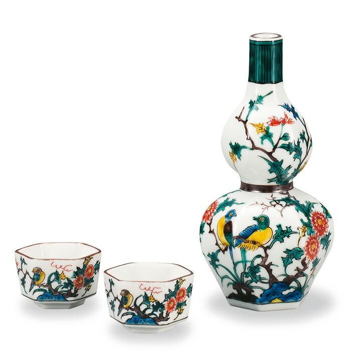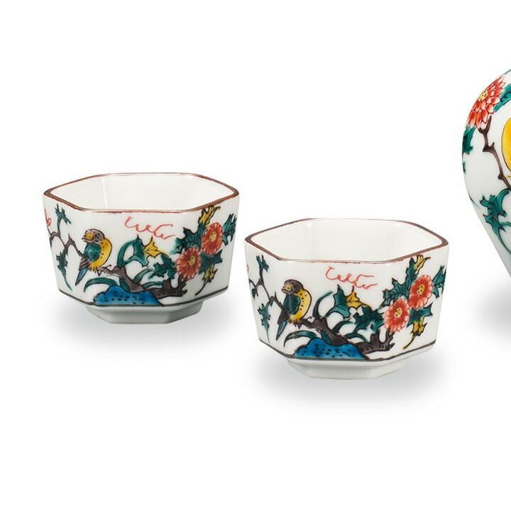 晩酌揃 古九谷風花鳥 化粧箱入り