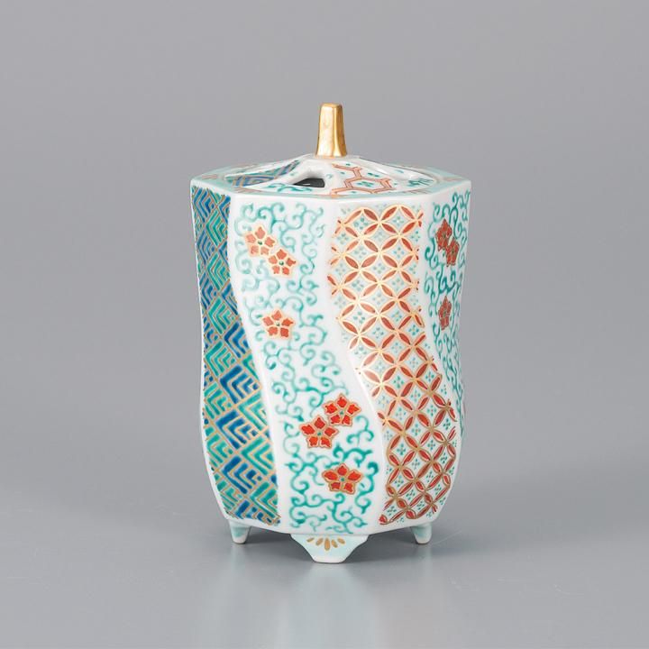 4.3号捻り香炉 仁清風割取唐草小紋 木箱入り