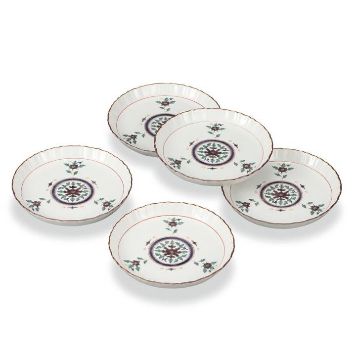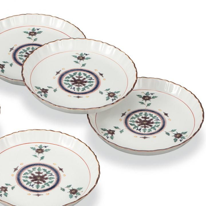 5号皿揃 色絵牡丹 / 銀泉窯 化粧箱入り