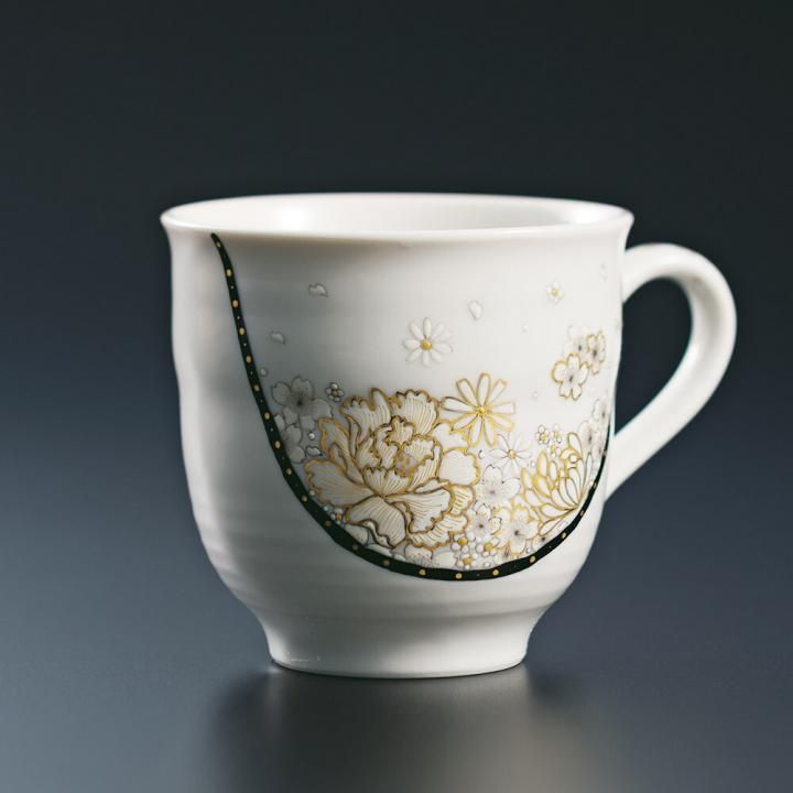 マグカップ 本金墨花詰(白) / 西由紀夫 化粧箱入り