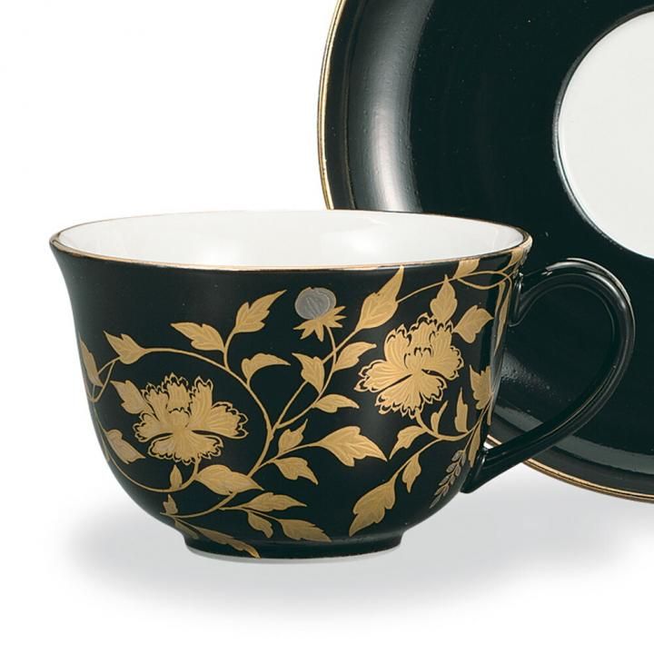 コーヒーカップ&ソーサー 金襴手 黒 / 大志窯 化粧箱入り