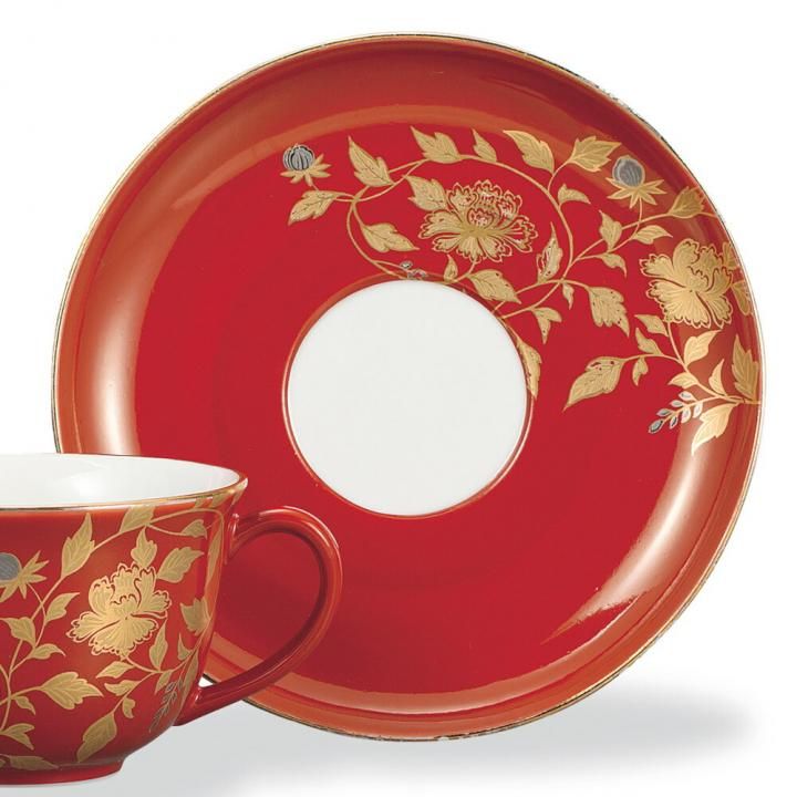 コーヒーカップ&ソーサー 金襴手 赤 / 大志窯 化粧箱入り
