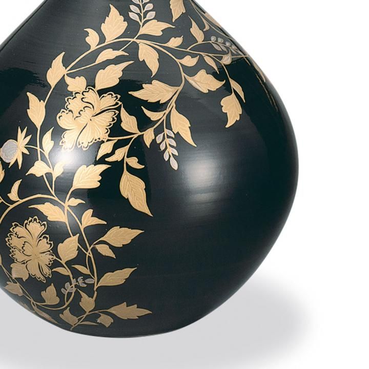 花器 金襴手 黒 / 大志窯 化粧箱入り