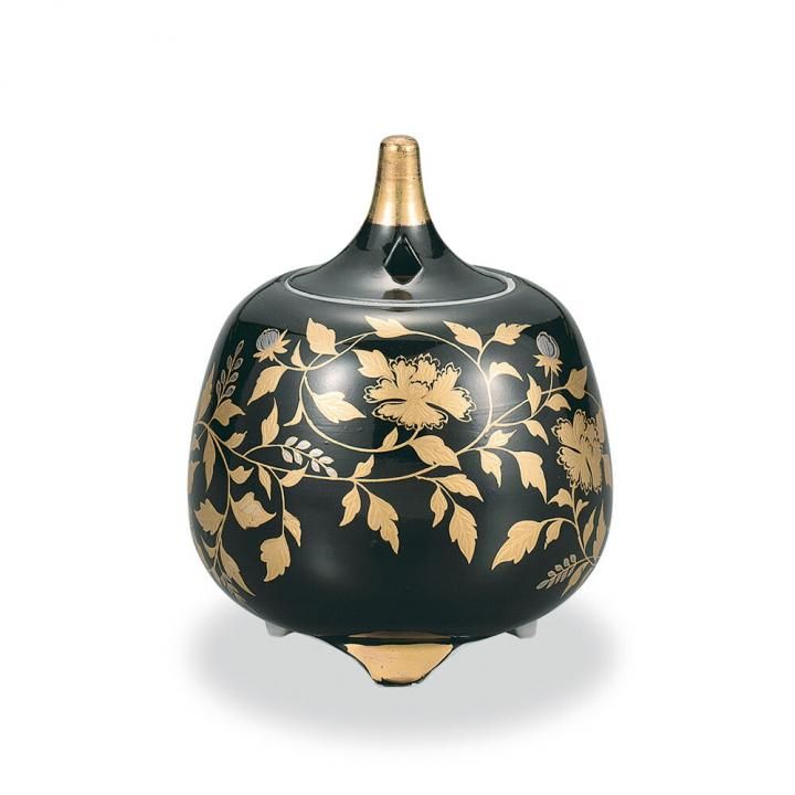 香炉 金襴手 黒 / 大志窯 木箱入り