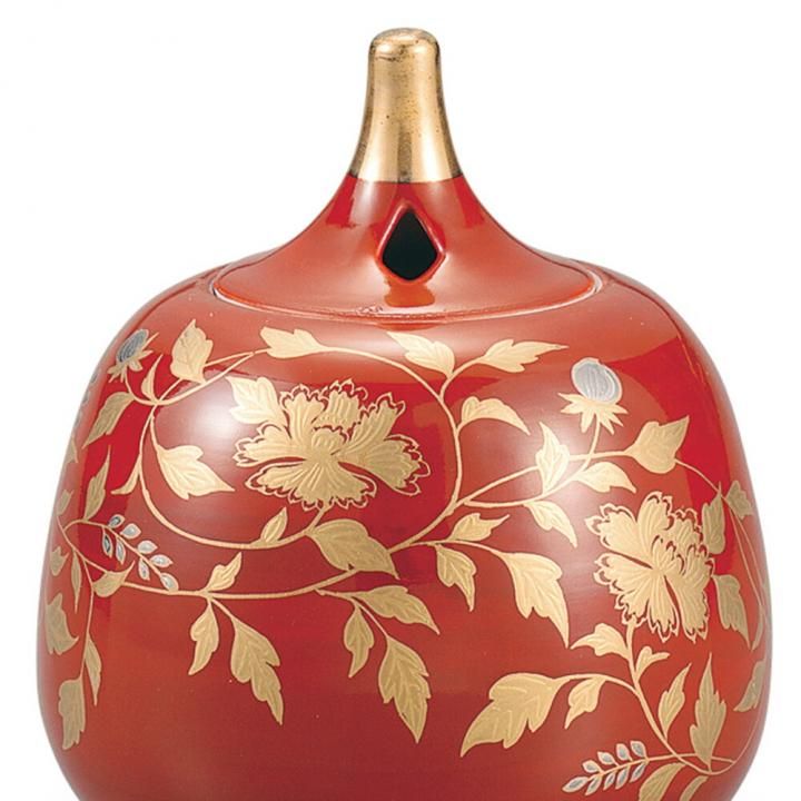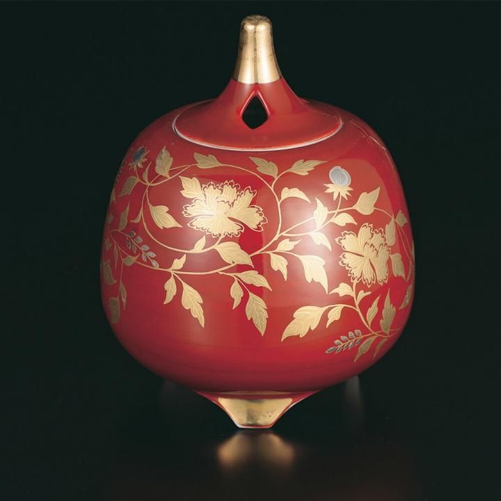 香炉 金襴手 赤 / 大志窯 木箱入り