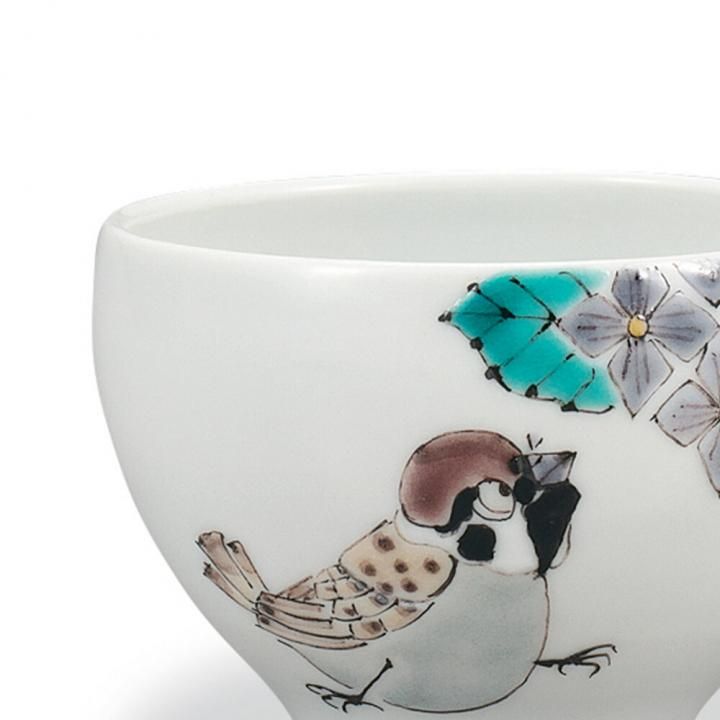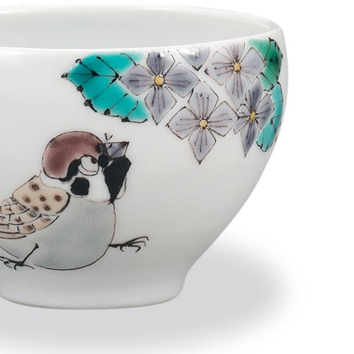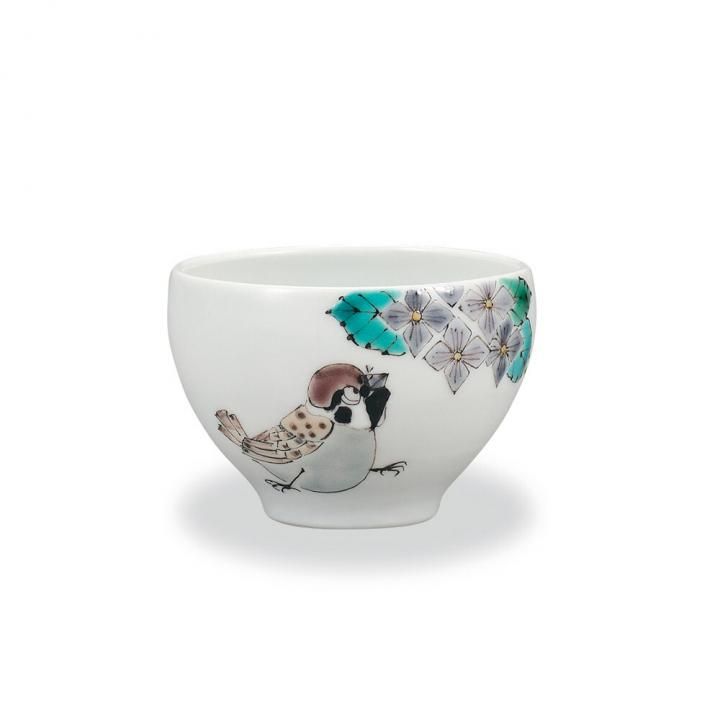 ぐい? 額紫陽花に雀 / 大志窯 化粧箱入り