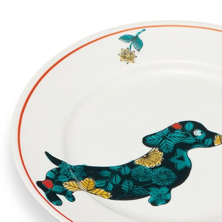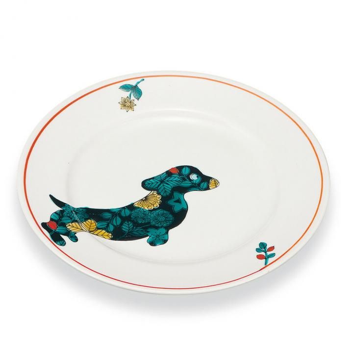 6号皿 ボタニカル青手 犬 / 大志窯 化粧箱入り
