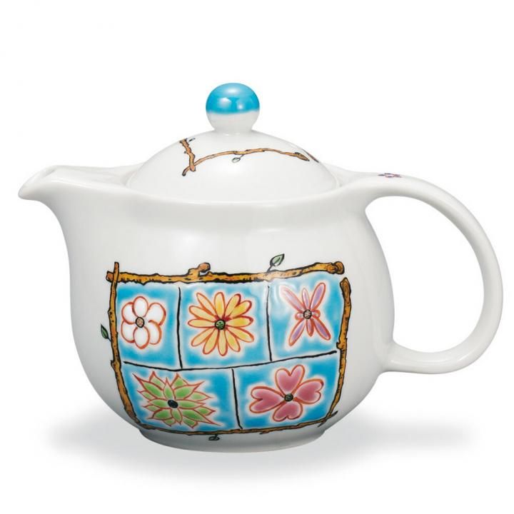 ポット急須 フラワーBOX ライトブルー / 岩田玲子 化粧箱入り