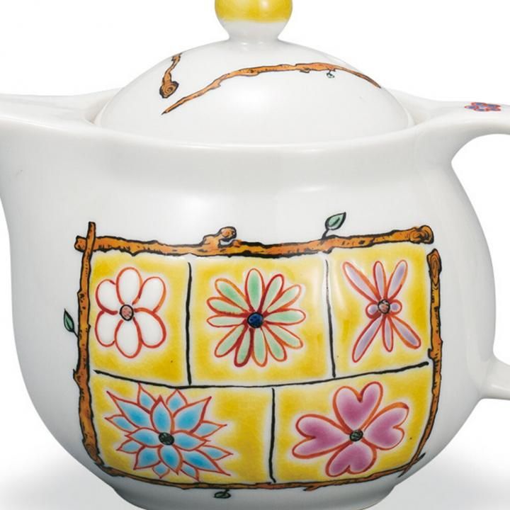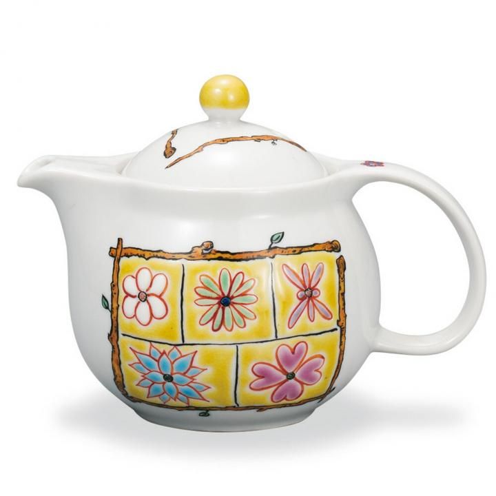 ポット急須 フラワーBOX イエロー / 岩田玲子 化粧箱入り