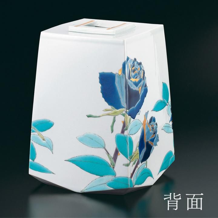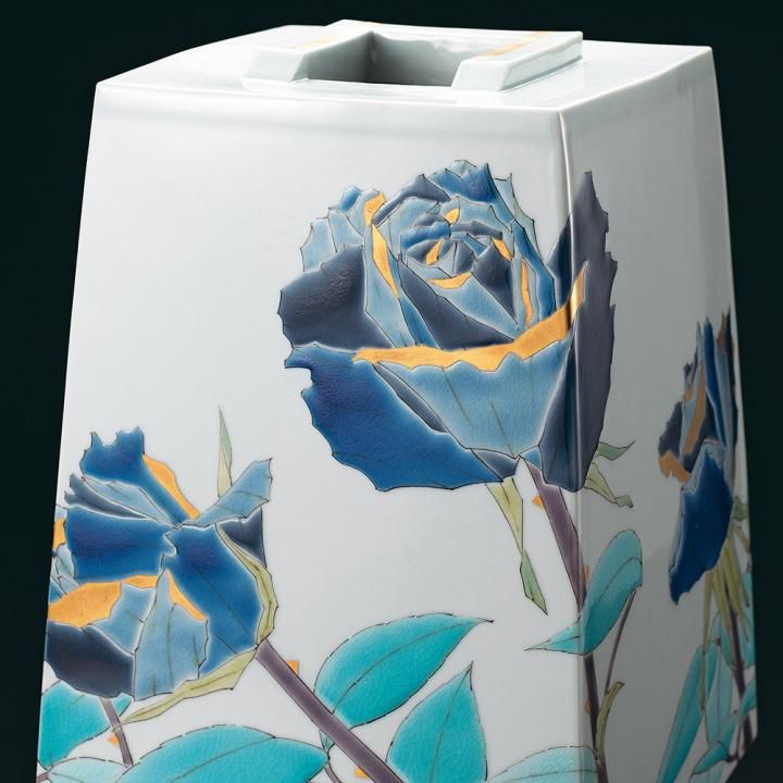 方壺 色絵薔薇「青玲」 / 山岸大成 桐箱紐通し入り