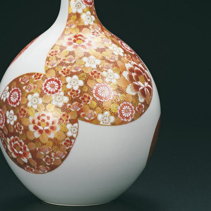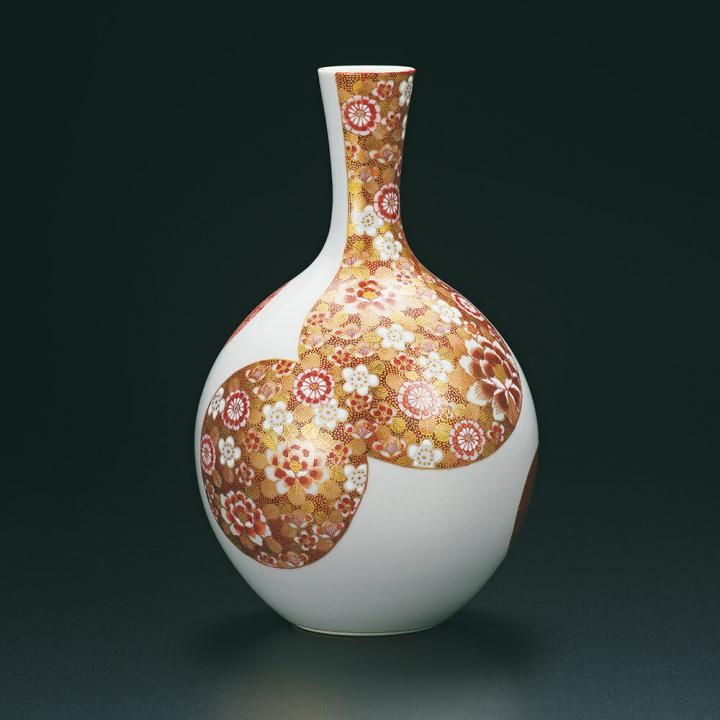 8号花瓶 赤絵金彩花詰紋 / 高聡文 桐箱紐通し入り