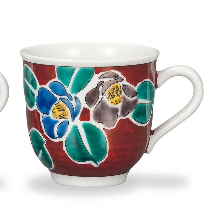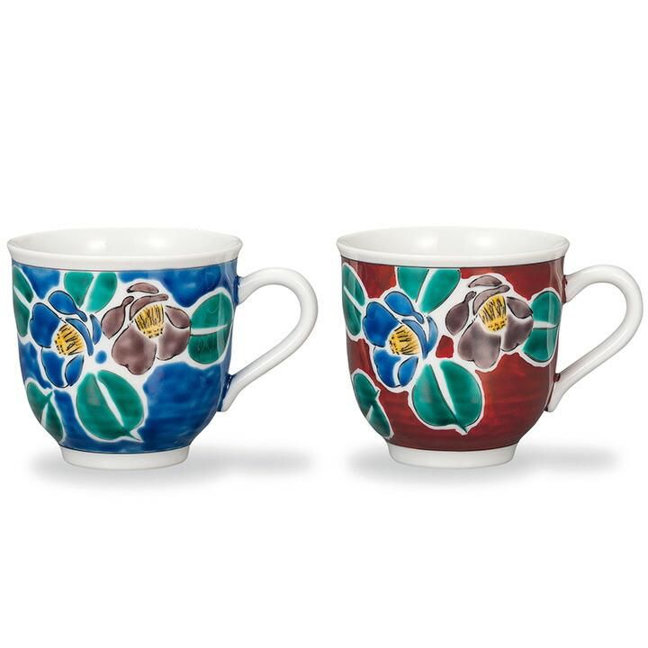ペアマグカップ 吉田屋山茶花(赤紺) / 幸洋窯 化粧箱入り